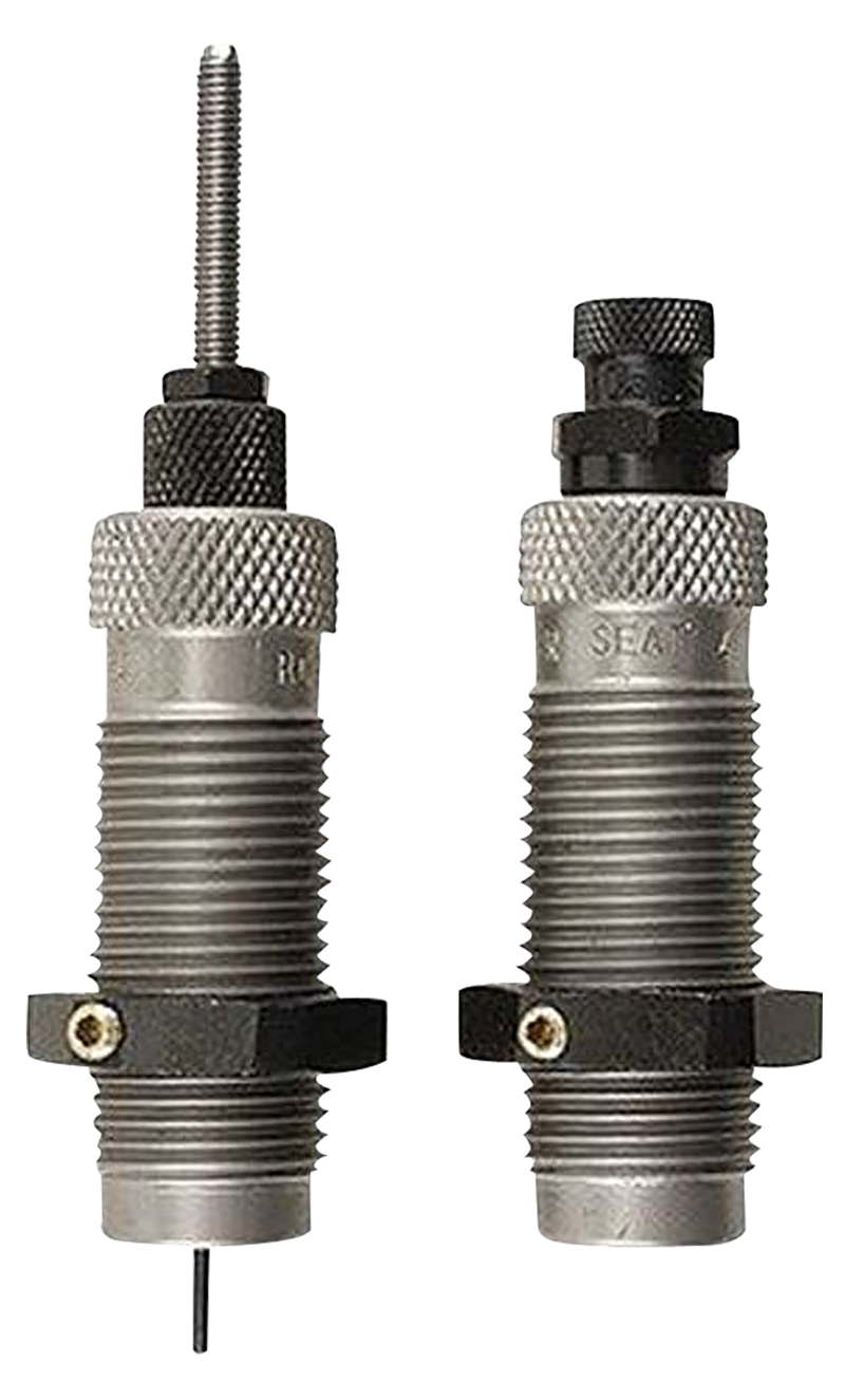 This two-die reloading set is designed for bottleneck rifle cases and consists of a Full-Length Sizer Die with Expander-Decapping Unit and a Seater Die with Bullet Seater Plug. The Full-Length Sizer Die brings cases to SAAMI minimum dimensions, sizes the case exterior, de-primes, and expands the neck to accept bullets. Vented design prevents case damage from trapped air and excessive lubricant.