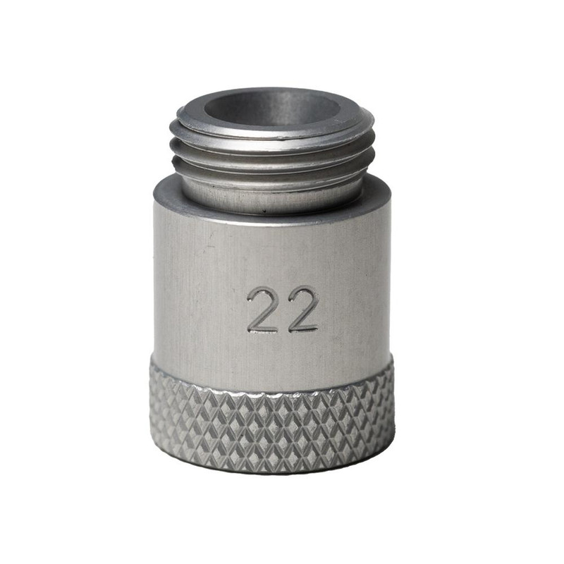 Precision-engineered adapter for the RCBS MatchMaster Powder Funnel system, designed specifically for .22 caliber cases. Features a unique interior design that ensures exact fit and spill-free powder flow into case mouths for both rifle and pistol applications. Part of a comprehensive lineup of thirteen adapters covering .17-.50 caliber.