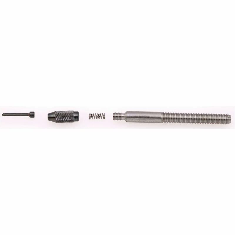 The RCBS Power Punch Decapping Assembly is a complete decapping solution designed for various calibers and case diameters used in ammunition reloading. It features an extremely hard and slick expander button with a positioning sleeve for easy adjustment, which facilitates extraction through the case neck and reduces case stretching. This assembly helps extend case life and improve accuracy while reducing the need for case trimming.