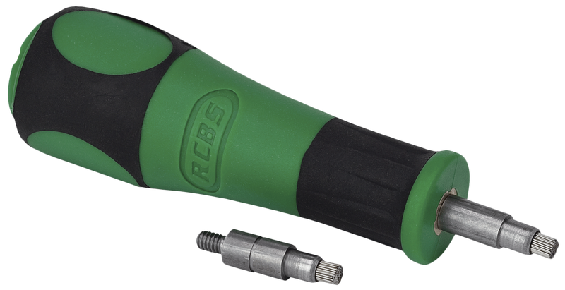 This primer pocket brush combo removes residue buildup from primer pockets to prevent misfires during reloading. It features stainless steel bristles with interchangeable mounts designed for both large and small primer pockets, and includes a no-roll accessory handle for ease of use.