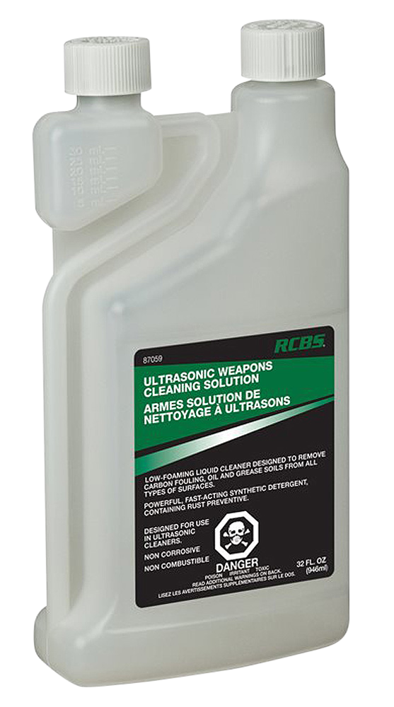 Concentrated non-toxic cleaning solution designed for use with RCBS Ultrasonic Case Cleaners and general firearm cleaning. The fast-acting synthetic detergent removes carbon buildup, grease, and fouling from firearm parts while providing rust prevention and corrosion protection. Non-corrosive and non-combustible formula makes 10 gallons when diluted.
