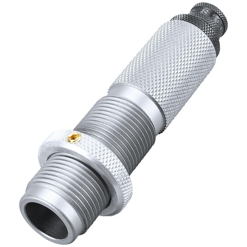 Full length sizer die for .308 Winchester ammunition reloading, made from steel with a special mandrel design that reduces case body diameter compared to standard dies. Designed to minimize case neck trimming, requiring only a single 0.02 inch trim with no additional trimming needed. Compatible with pump, semi-automatic, and lever-action rifles.