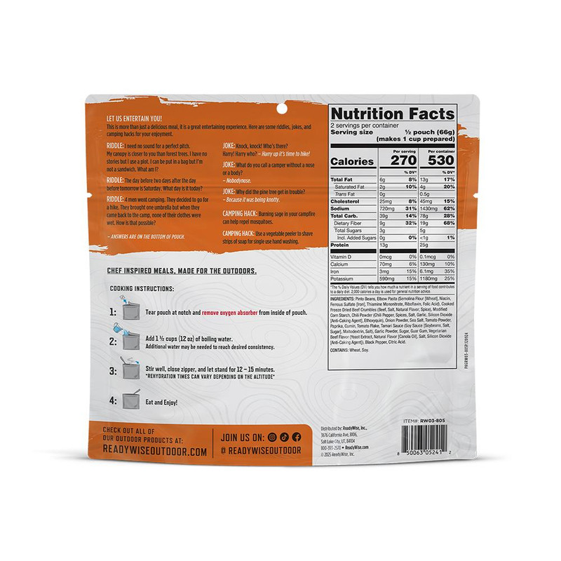 ReadyWise Chili Mac with Beef Single Pack - RW05-805