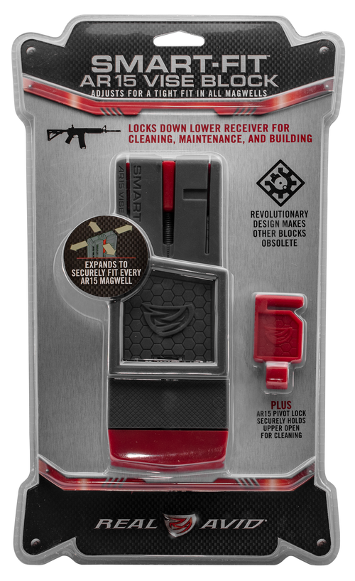 The Real Avid Smart Mag Tool is designed for quick disassembly and base plate removal and installation on Glock magazines. This plastic tool features a gray and red color scheme and simplifies magazine maintenance for Glock platform firearms.