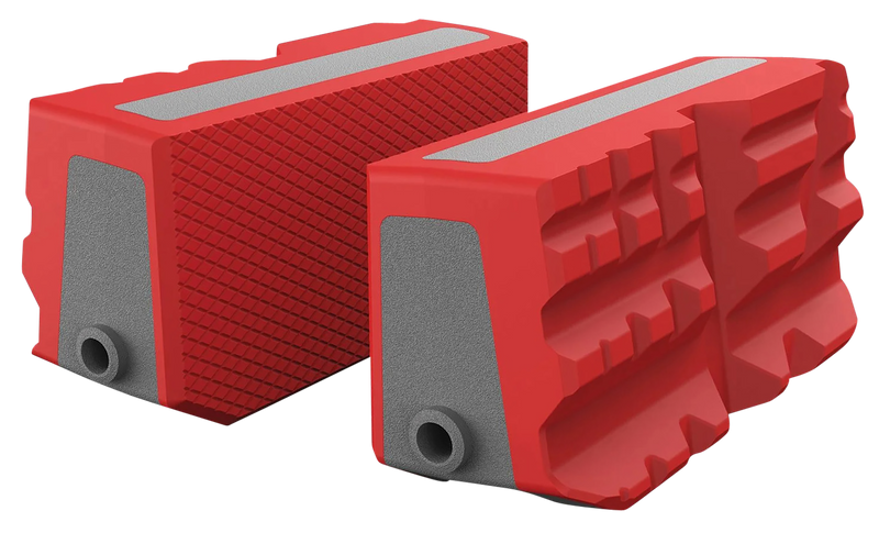 Reversible rubber overmold sleeves designed for use with the Real Avid Master Gun Vise. These slip-on multi-fit jaws protect firearms during vise work with gray and red color options. Dimensions measure 8.6" length × 6.5" width × 2.5" height.