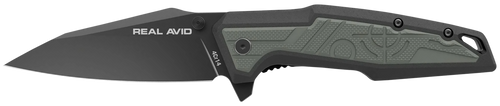 The Real Avid RAV-5 is an assisted-opening folding knife featuring a 3.4" stainless steel blade with a plain edge and matte finish. It has an aluminum handle with a liner lock mechanism and measures 7.6" in overall length, making it a compact everyday carry option.