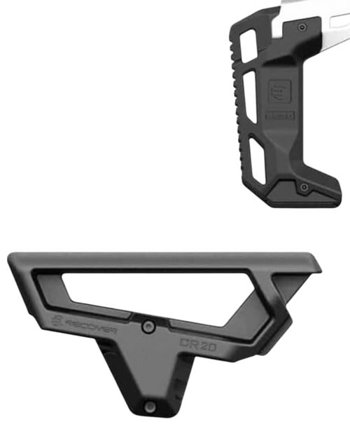 The Recover Tactical CRP01 is a cheek rest accessory designed to improve shooting comfort and consistency. Constructed from glass-reinforced polymer, it measures 6.1" long × 3.2" wide × 1.3" tall and mounts to compatible tactical stocks. This attachment provides better cheek weld for optics alignment and is part of the S-Pro series.