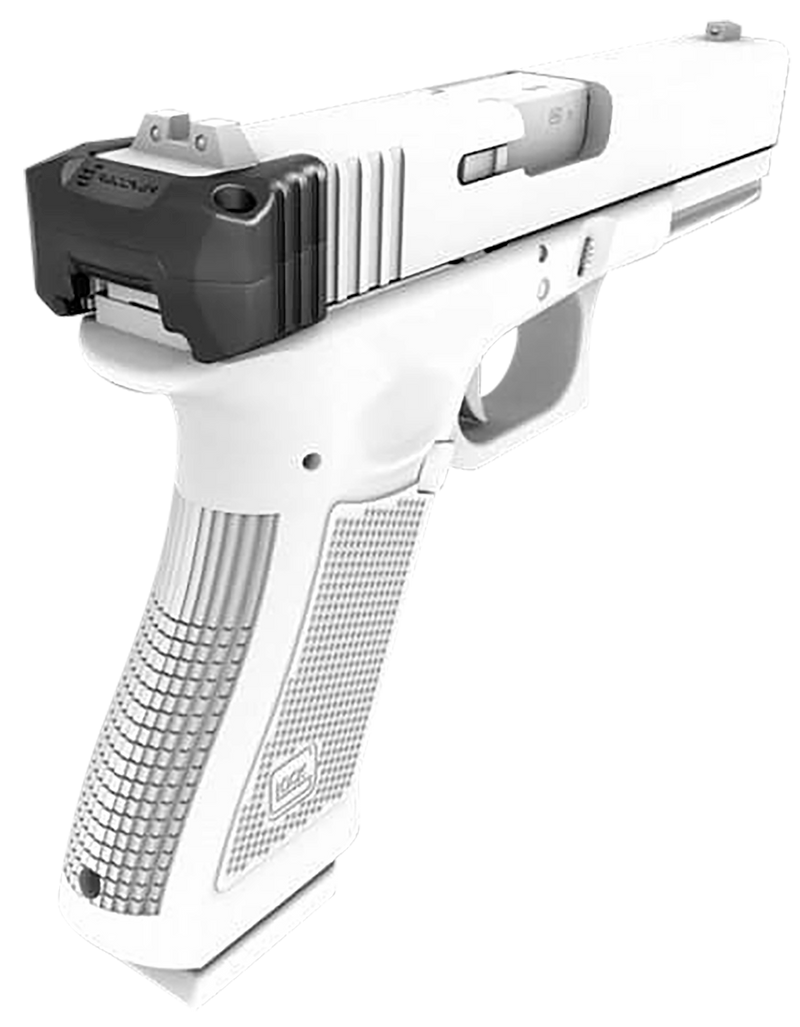 Ambidextrous upper charging handle made of black polymer, compatible with Glock Gen1-5 models 17, 19, 24, 26, 27, 35 and Gen1-4 models 22, 23. Dimensions are 6.1" length x 3.2" width x 1.3" height. This accessory provides ergonomic charging capability for enhanced pistol manipulation.