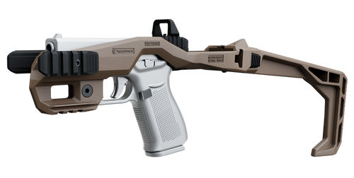The SA43 20/20N Stabilizer Kit is a polymer grip enhancement designed for Glock 43, 43X, and 48 pistols (all generations including MOS and Non-MOS). It adds width to the trigger guard and includes a beaver tail for improved ergonomics. Installation requires zero disassembly and is compatible with OEM Glock slides only.