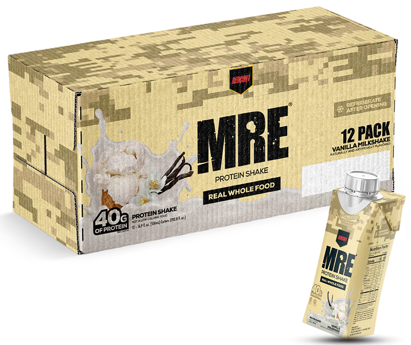 Redcon1 MRE Ready to Drink Vanilla Milkshake provides a convenient nutrition option in 14 oz ready-to-drink format, packaged as a 12-pack. This product is designed for field use and outdoor activities where quick, shelf-stable nutrition is needed.