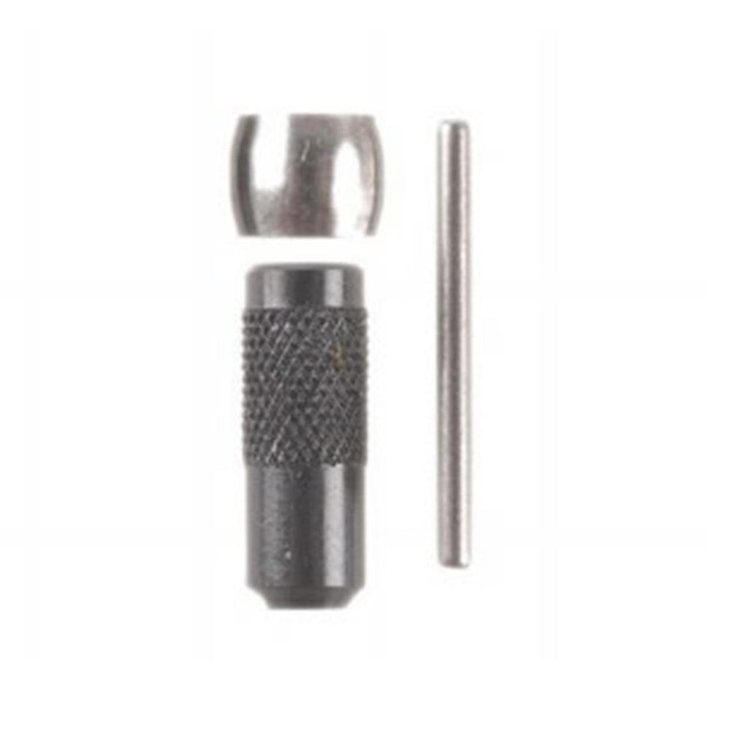 Carbide neck sizing button kit designed for 6mm bottleneck cartridges that enables inside neck sizing without lubrication. The free-floating carbide button self-centers in the case neck for smooth, consistent sizing. Kit includes carbide size button retainer and spare decapping pin.