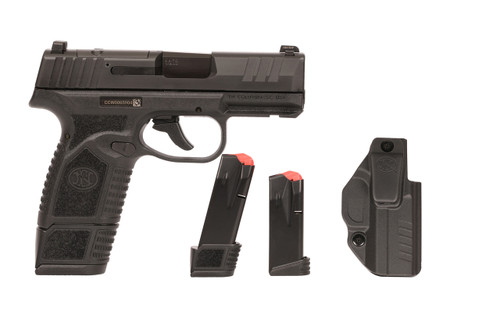 The FN Reflex is a 9mm semi-auto pistol with a 3.3" barrel and 15+1 round capacity, featuring an optic-ready slide for mounting reflex sights. This polymer-framed pistol includes night sights, a slim-line rail mount, and ships with an IWB holster and FN Range Case. Weighing 18.5 oz., it combines compact carry dimensions (6.2" overall length) with modern ergonomics and accessory compatibility.