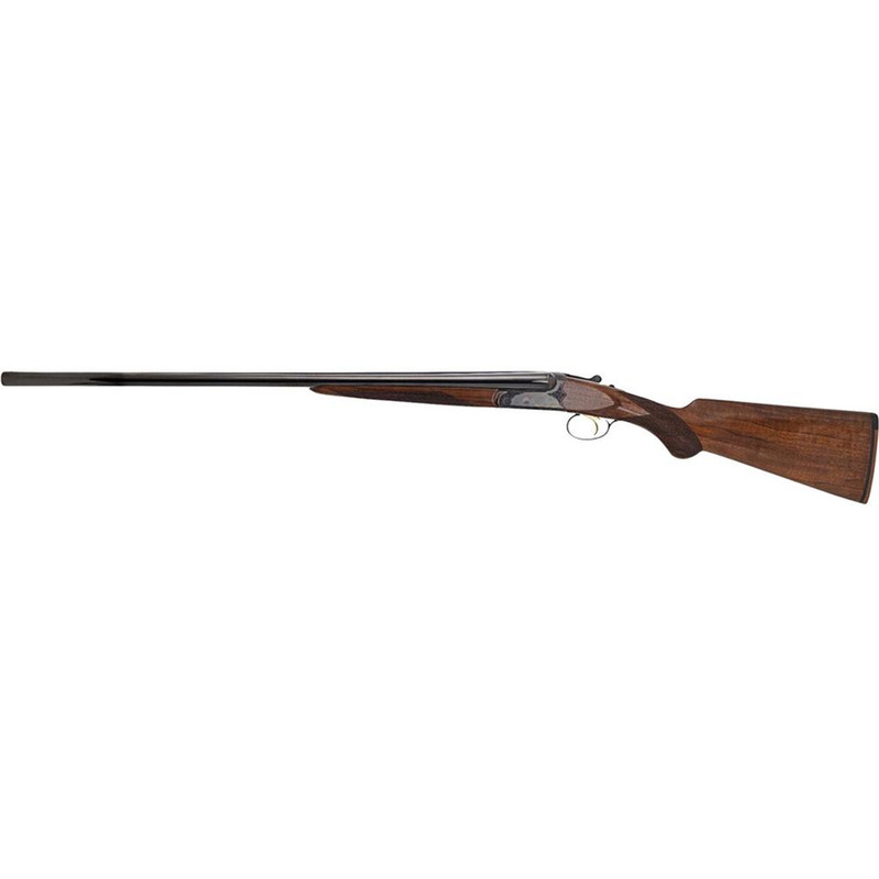 The Remington 1816 Precision is a side-by-side double-barrel shotgun chambered in 20 Gauge with a 3" chamber, 28" barrels, and 2-round capacity. Built on a color case-hardened receiver with blued barrels and Grade 2 Turkish walnut furniture, it features ejectors, a Prince of Wales straight stock, gold trigger, and includes 5 interchangeable choke tubes. The gun weighs 6.4 lbs with an overall length of 46" and comes with a carrying case.