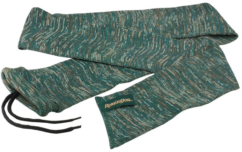 This Remington gun sock is a silicone-treated cotton protective sleeve designed for rifle storage and transport. The 52-inch length accommodates most rifle configurations, and the silicone treatment provides moisture resistance to protect against corrosion. Ideal for hunters and shooters needing basic firearm protection during storage or travel.
