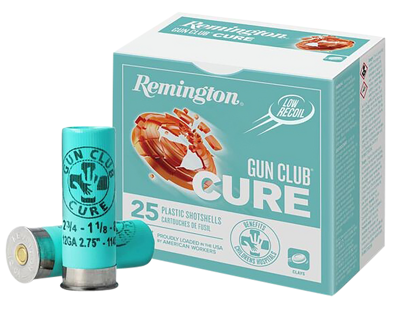 Remington Gun Club Cure shotshells are designed for target shooting and clay sports. These 12 gauge loads feature 1 1/8 oz of #8 shot at 1100 fps muzzle velocity, delivering consistent performance for competitive and recreational shooting.