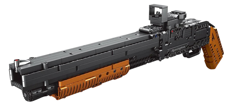This is a 21-inch toy shotgun constructed from plastic building blocks with 863 pieces for assembly. The set includes 6 plastic projectiles and is designed as a recreational toy rather than a functional firearm accessory. Not intended for hunting use.