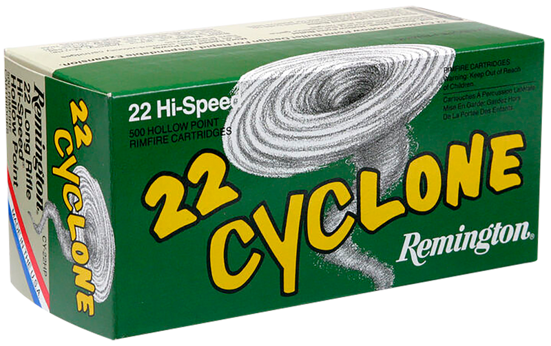 Remington Cyclone .22 LR ammunition features 36-grain hollow point bullets loaded in brass cases with a muzzle velocity of 1280 fps. Designed for plinking, target shooting, and small game hunting, this high-velocity rimfire ammo delivers excellent penetration and expansion from the hollow point design.