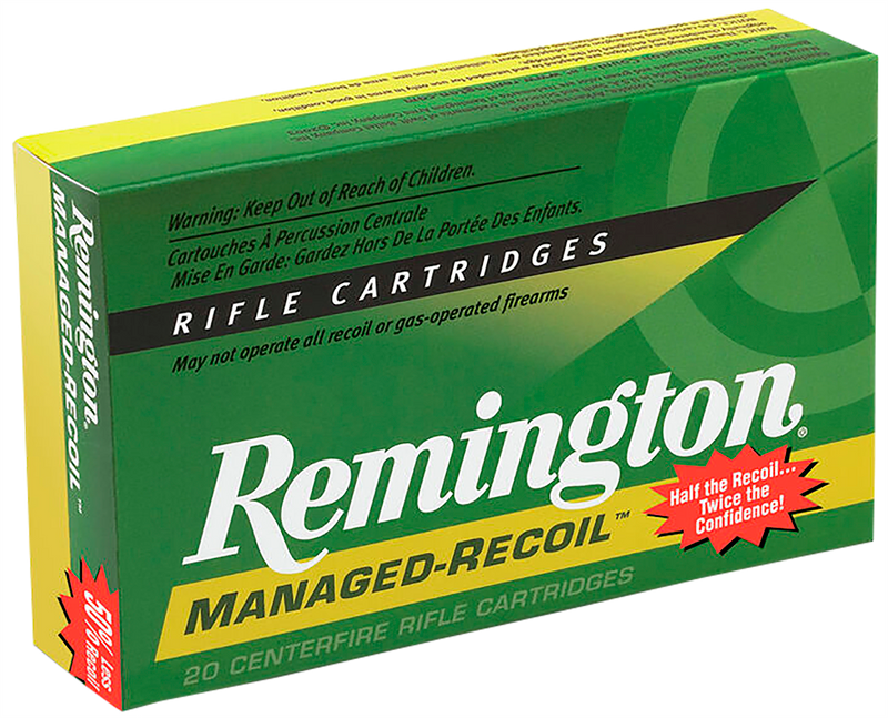 Remington Managed-Recoil centerfire rifle ammunition in .30-30 Winchester with 125-grain Soft Point Core Lokt bullets. Delivers 2175 fps muzzle velocity and 1313 ft-lbs of energy with reduced recoil for improved shooter confidence while maintaining reliable on-game performance. Brass casing, boxer primed, 20 rounds per box.