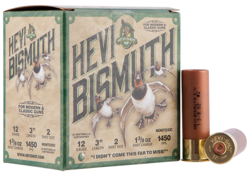 Remington Premier Bismuth shotshells are loaded with bismuth shot for superior density and retained energy compared to steel shot, making them ideal for waterfowl and upland game hunting. These 12 gauge 3-inch shells deliver 1-3/8 ounces of #2 shot at 1400 fps from a plastic case with high brass primer for reliable performance.