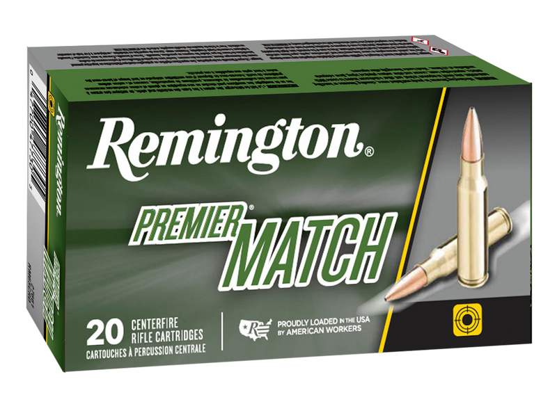 Remington Premier Match ammunition in 6.5 PRC with 140 grain Berger Open Tip Match bullets, designed for precision target shooting and competitive use. Factory-loaded with match-grade bullets and special loading practices to deliver consistent accuracy and performance. 20 rounds per box, brass casing, boxer primer, reloadable.