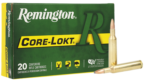 Remington Core-Lokt .270 Winchester ammunition features 100 grain Pointed Soft Point bullets delivering 3320 fps muzzle velocity and 2447 ft-lbs of energy from brass cases. This factory-loaded hunting ammunition offers time-proven controlled expansion performance with 20 rounds per box, packaged 10 boxes per case.