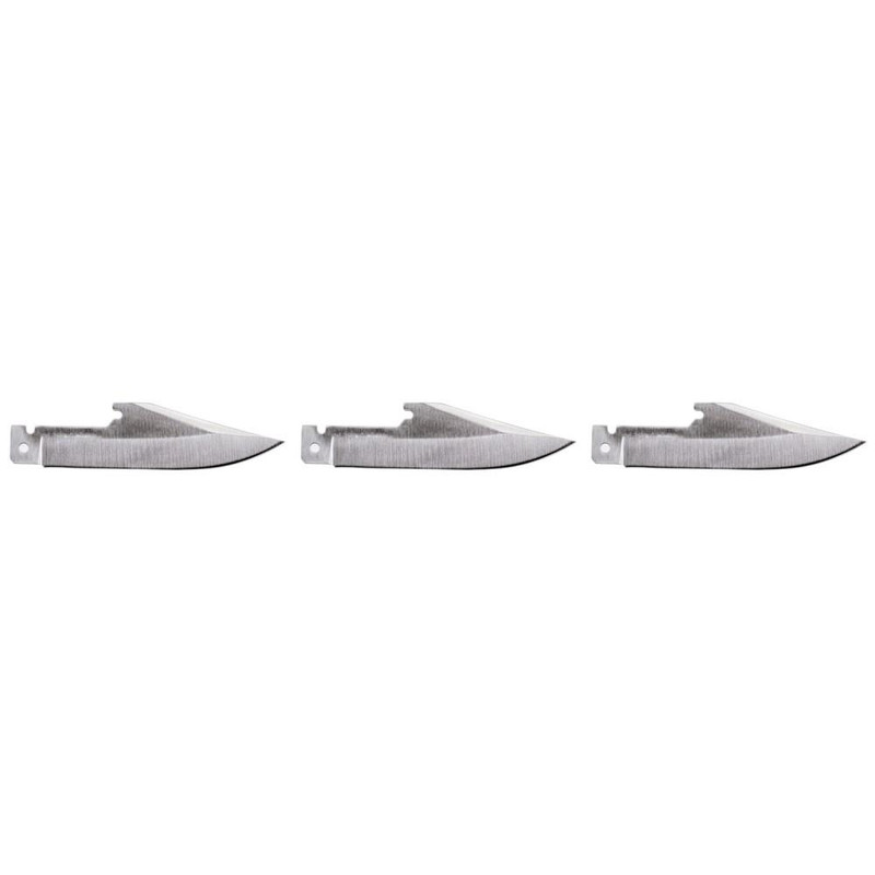 Replacement blade set containing 3 drop point blades made from 440 stainless steel, designed for Remington RXB knives. Each blade measures 3-1/2" in length with a plain edge. This accessory set allows users to extend the life of their RXB knife handles by swapping worn or damaged blades.