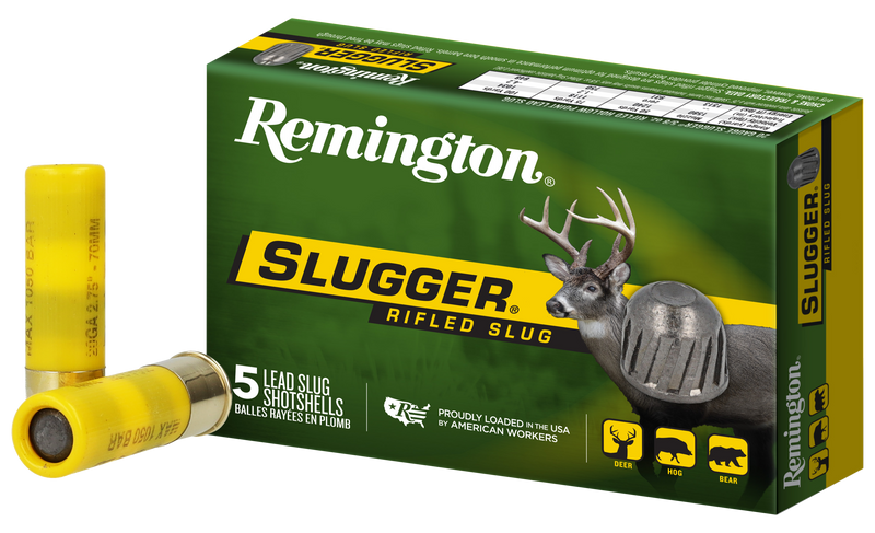 Remington Slugger Rifled Slug ammunition in 20 gauge 2.75" features a 5/8 oz rifled slug designed for deer hunting in slug-only states. With a muzzle velocity of 1580 fps, these slugs deliver 25 percent greater accuracy and 25 percent flatter trajectory compared to standard slugs. The rounds come in plastic cases with 5 rounds per box.