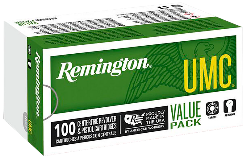 Remington UMC 9mm Luger ammunition loaded with 115-grain full metal jacket bullets at 1145 fps muzzle velocity and 335 ft-lbs of energy. American-made with first-quality brass cases and Kleanbore primers, this value-oriented ammunition is suitable for target shooting and training in high-volume shooting situations. Ships 100 rounds per box, 6 boxes per case.