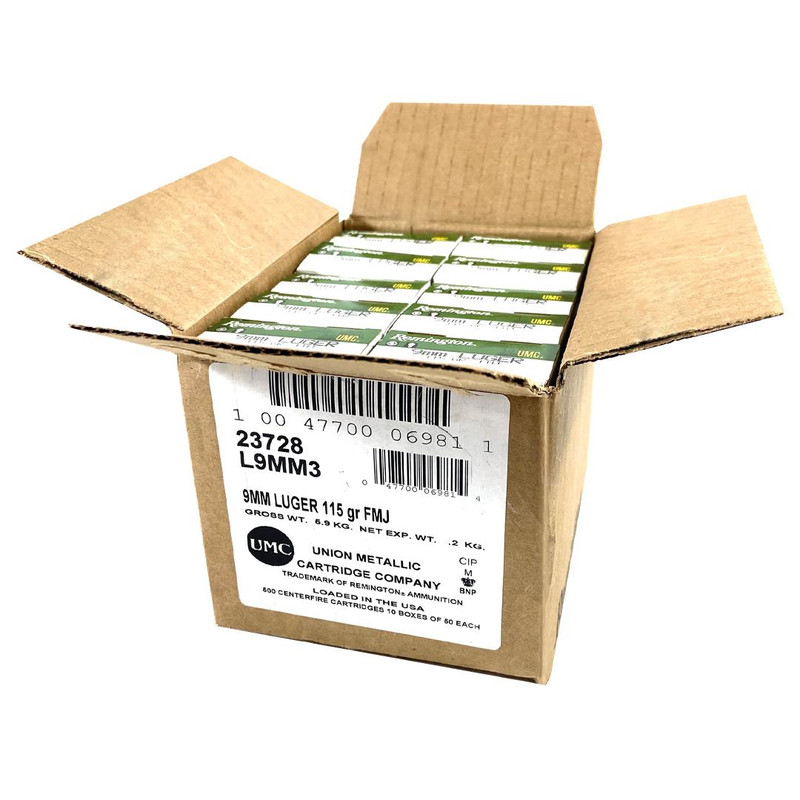 Remington UMC 9mm Luger 115 gr FMJ Handgun Ammunition 1000/ct Case - 23728CASE