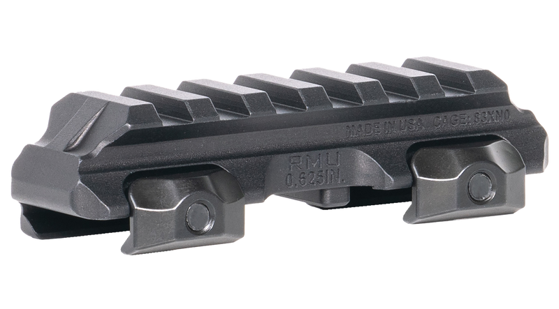 The Reptilia RMU Mount is a lightweight, slim-line Picatinny rail riser mount manufactured from 7075-T6 aluminum with Type 3 hard anodized finish. Designed to elevate optics with fixed lower 1/3 co-witness heights (such as EOTech, Vortex AMG UH-1, and Sig ROMEO8T) to a more ergonomic height for helmet-borne night vision or upright shooting stance. This 1-piece mount features mil-spec 1913 Picatinny compatibility and is made in the USA.