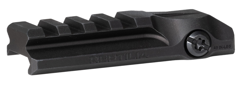 The Reptilia RMU Mount for Magnifiers is a lightweight, slim-line riser mount machined from billet 7075-T6 aluminum. It raises 3x and 6x magnifiers 0.39" to co-witness with 1.93" mounted red dot optics or other configurations. This single-piece, anodized mount is made in the USA and designed to work with standard magnifier mounts.