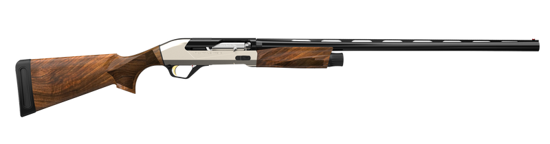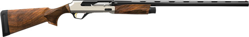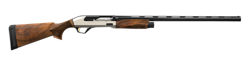 The Retay ACE Upland Ultralight is a 20 gauge semi-automatic shotgun with a 26" barrel and 3" chamber, holding 3+1 rounds. It features an inertia piston system, lengthened forcing cone, and MaraPro choke tubes (C, IC, M, IM, F) for versatile hunting performance. The lightweight design weighs 7 lbs 4 oz with a satin walnut wood stock and TruGlo fiber optic front bead sight.