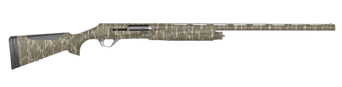 The Retay Ace Type R is a 20 gauge semi-automatic shotgun with a 26" ventilated rib barrel and 3" chamber, holding 3+1 rounds. The receiver is drilled and tapped with an adjustable shim synthetic stock finished in Mossy Oak Bottomland camouflage. It features a reversible safety button and fiber optic bead sight for reliable field performance.