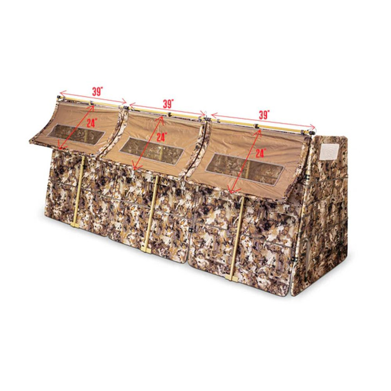 This flip-top lid attaches to the top rail of Rig Em Right Panel Blinds to provide overhead concealment. Features see-through mesh windows with stubble straps, a stabilizer bar for easy opening during shooting, and is constructed from durable 600D material with a lightweight powder-coated aluminum frame.