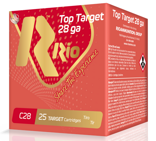 Rio Field 28 gauge shotshell ammunition loaded with 3/4 oz of #7.5 shot at 1295 fps muzzle velocity. Designed for small game hunting with a 2-3/4" plastic casing. Each box contains 25 rounds.