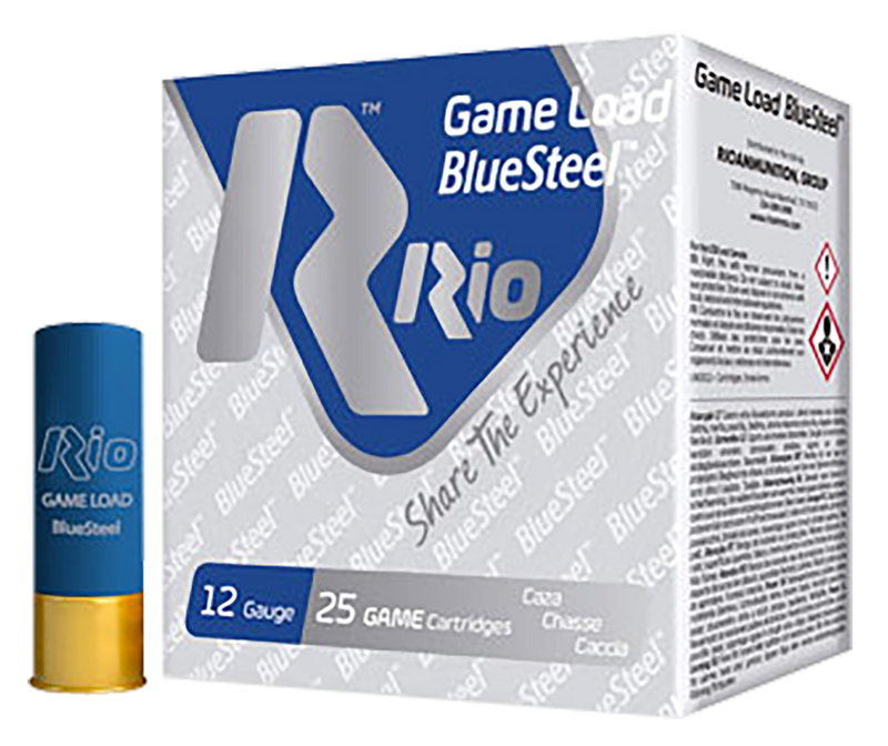 Rio Ammunition Game Load BlueSteel Plastic 12 Gauge 2.75" 1 1/8oz #7 Steel Shot 25 Round Box - GLBS327