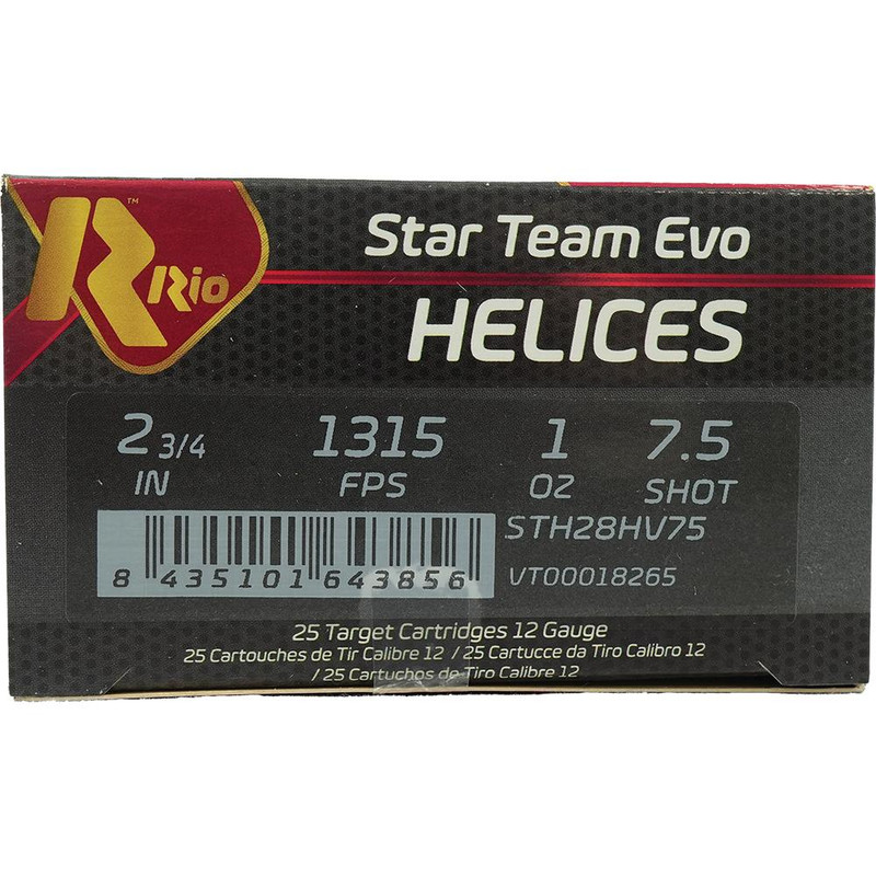 Rio Star Team EVO Helice HV Plastic 12 Gauge 1oz #7.5 Shot 25 Round Box - STH28HV75