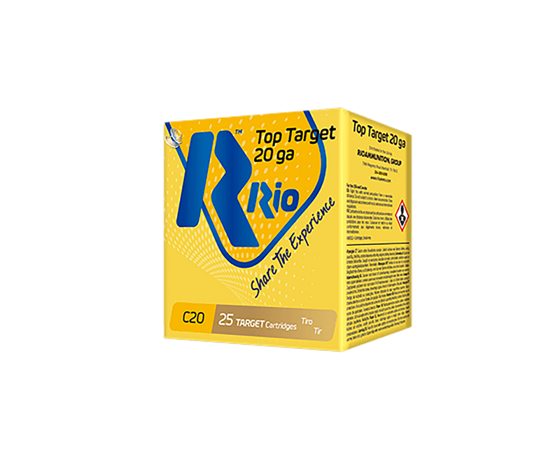 Rio Top Target shotshells are 20 gauge, 2-3/4" rounds loaded with 7/8 oz of #7.5 lead shot, delivering 1250 fps muzzle velocity. Designed for clay target shooting and sport competitions, these plastic-cased shells offer consistent performance for recreational shooters.