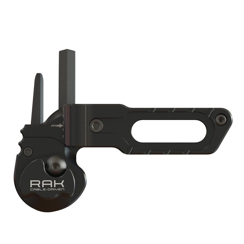 The Ripcord RAK is a cable-driven arrow rest with external activation chord adjustment for quick and precise tuning. Features an anti-bounce back launcher design that stops the launcher upon shot release to eliminate bounce back, delivering consistent accuracy. Constructed from anodized aluminum and weighs 6.1 oz.