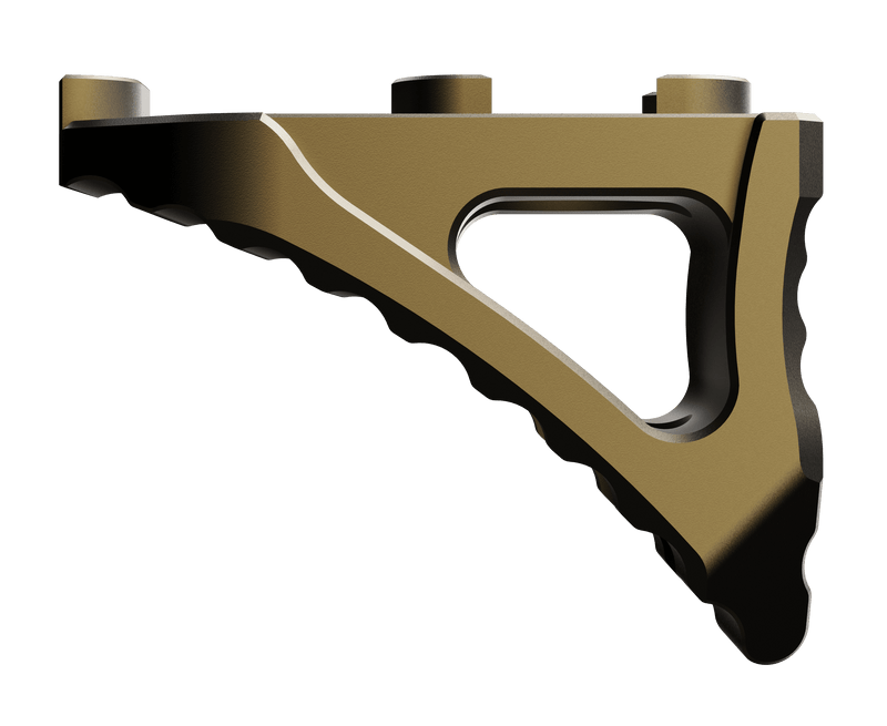 The Rise Armament Micro Hand Stop is a skeletonized aluminum accessory designed for M-LOK handguards. Constructed from 7075 T6 aluminum with an anodized bronze finish, this hand stop measures 5.5" in length and provides a lightweight mounting solution for improved control and ergonomics.