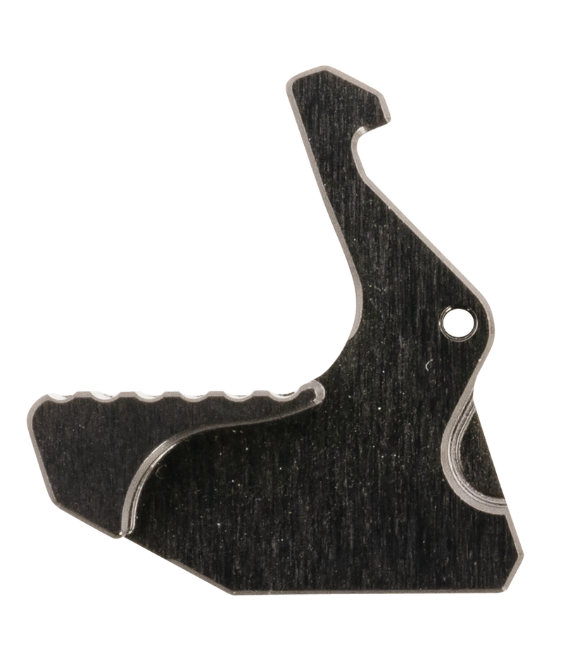 Extended charging handle latch for mil-spec AR-15 charging handles, manufactured from aluminum with an ergonomic engagement surface. Improves grip and charging performance in adverse conditions including wet weather and while wearing gloves. Easy-to-install aftermarket upgrade that enhances racking smoothness and control.