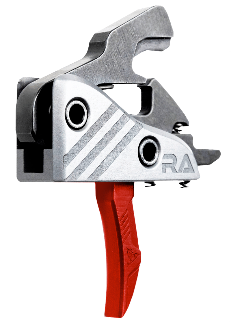Single-stage AR-platform trigger with a 3.5lb pull weight and red trigger blade. Constructed from aluminum and steel materials. Fits AR-15, AR-10, and AR-9 platforms with a standard installation method.