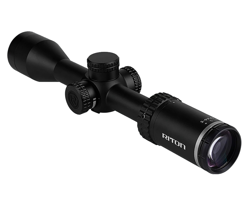 The Riton Optics 1 Primal is a 3-9x40mm variable magnification rifle scope featuring a 1-inch tube and RHR reticle in a refined duplex design. Built with fully multi-coated optics, zero-resettable capped turrets, and side focus adjustment, it delivers reliable performance for hunting and field use. The long body design weighs approximately 19-22 oz with 1/4 MOA adjustments and a 10.75-inch overall length.