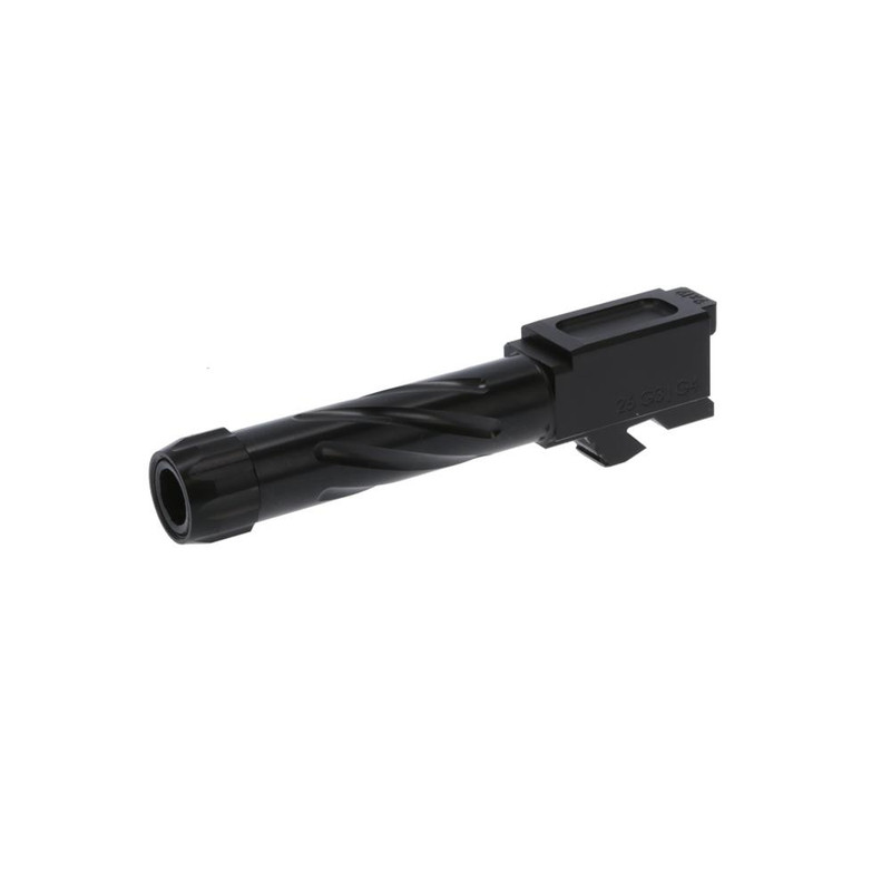 Match-grade precision drop-in barrel for Glock 26 Gen3/4 pistols, machined from high-quality stainless steel with premium coatings for superior accuracy. Features 1/2-28 threaded muzzle for compatibility with suppressors and compensators. 3.89" barrel length with 1:10 twist rate for optimal performance with standard 9mm ammunition.