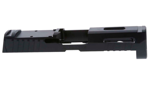 Optic-ready slide for Sig Sauer P320 full-size pistols with RMR cut for mounting red dot optics. Machined from 416R stainless steel with QPQ black finish. Designed for Striker-Fired semi-auto P320 platforms.