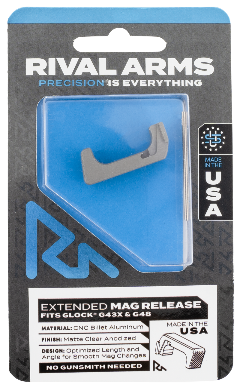 Rival Arms Extended Magazine Release for Glock 43/43X/48, Silver Aluminum - RA72G004D