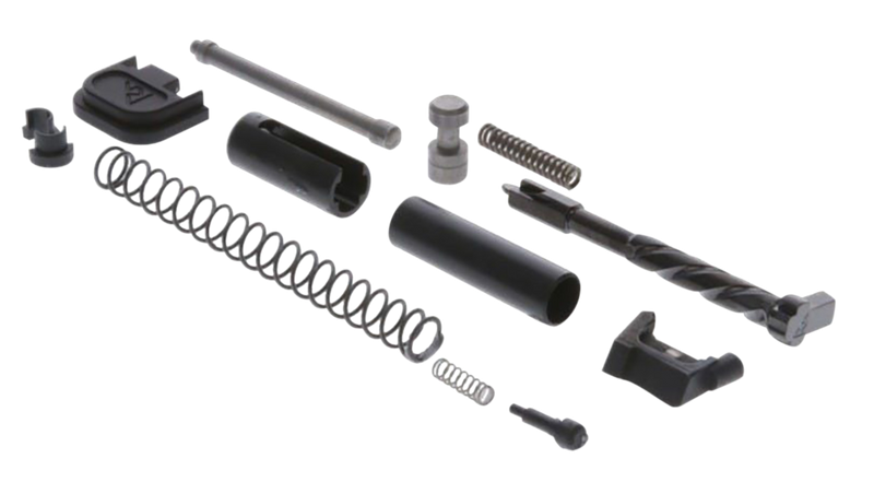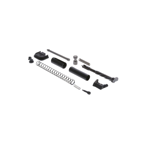 This slide completion kit includes all internal components needed to assemble the slide of a Glock 43/43X/48 in 9mm Luger, including striker, extractor, safety spring, back cover plate, and extractor depressor plunger. The kit is manufactured from stainless steel with black PVD finish and designed to work seamlessly together. After assembly, users need only add a barrel, guide rod, and completed lower receiver to have a functional firearm.