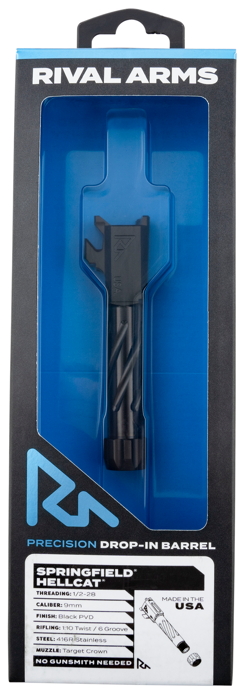 Rival Arms Precision V1 Match Grade Drop-In Barrel, 9mm, Black PVD Threaded for Springfield Hellcat - RARA20H102A