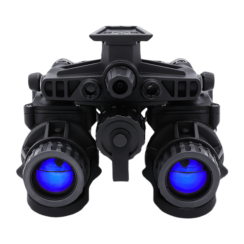 This dual tube night vision binocular system provides enhanced viewing for low-light and night operations. The device features a compact design measuring 9.3" x 7.2" x 6.6" and is equipped with dual objective lenses for stereo night vision capability. Ideal for tactical applications, surveillance, and outdoor nighttime activities.