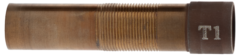 This 20 gauge choke tube is constructed from 17-4 PH stainless steel and features the Triple Threat T1 design for optimized performance with Optima HP loads. The tube measures 7.1" in length and 6.0" in width, providing reliable shot pattern control for shotgun hunting and sport shooting applications.